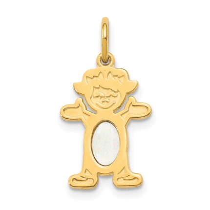 14K Girl Charm 6×4 Oval Genuine White Topaz-April