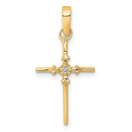 14k 1/4 carat Diamond Budded Cross Chain Slide