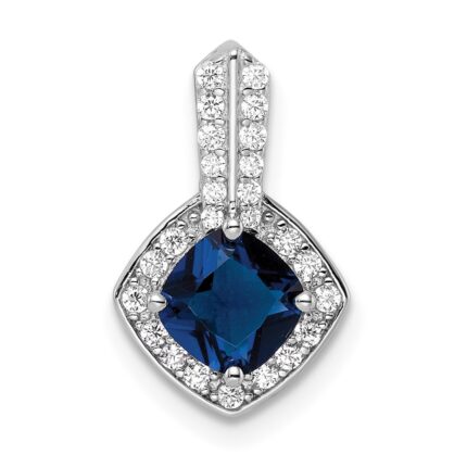 Sterling Silver Rhodium-plated CZ and Blue Glass Pendant