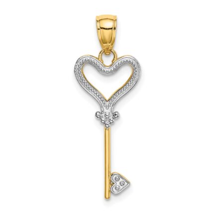 14K and White Rhodium Polished Heart Key Charm