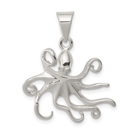 Sterling Silver Rhodium-Plated Polished and Brushed Octopus Pendant