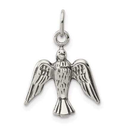 Sterling Silver Antiqued Diamond-Cut Bird Pendant