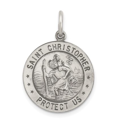 Sterling Silver Platinum-plated St. Christopher Medal
