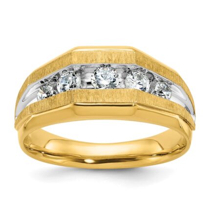 IBGoodman 14k with White Rhodium Men’s Polished and Satin 5-Stone 1 Carat AA Quality Diamond Ring