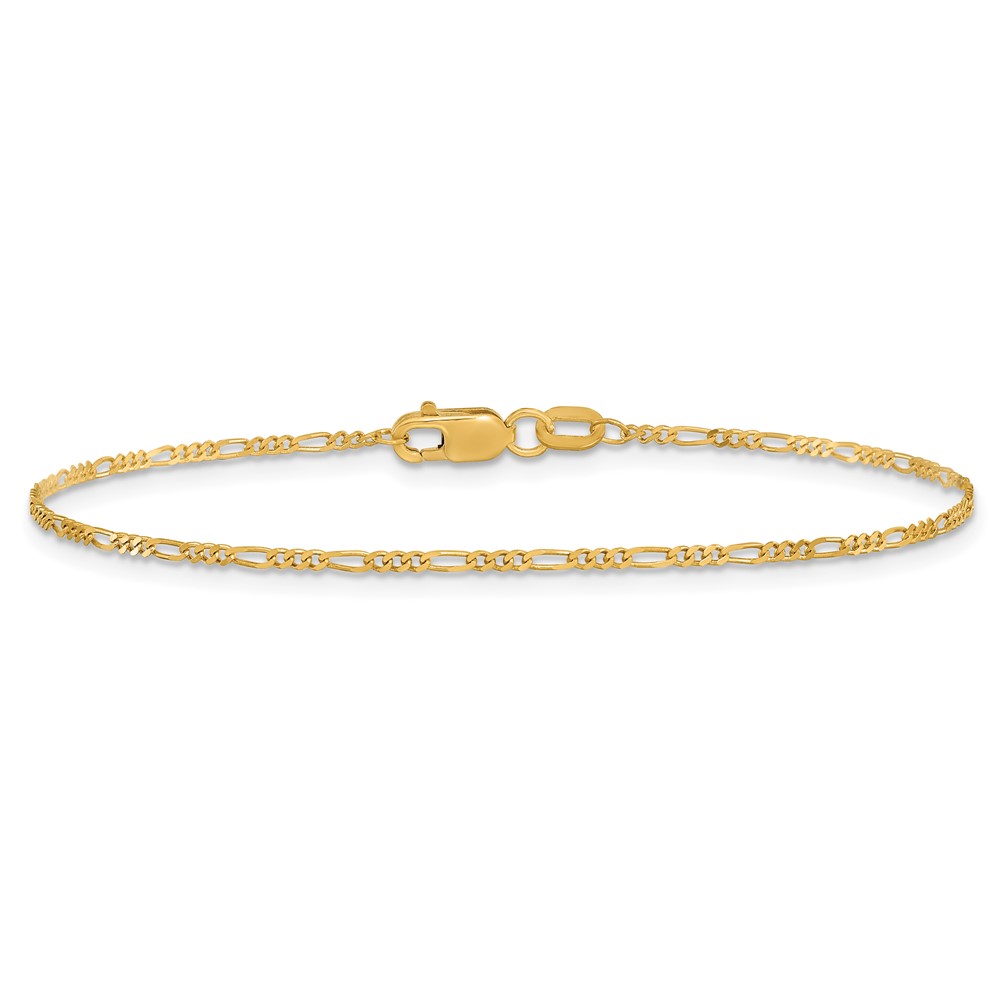 14K 2.25mm Flat Figaro with Lobster Clasp Anklet