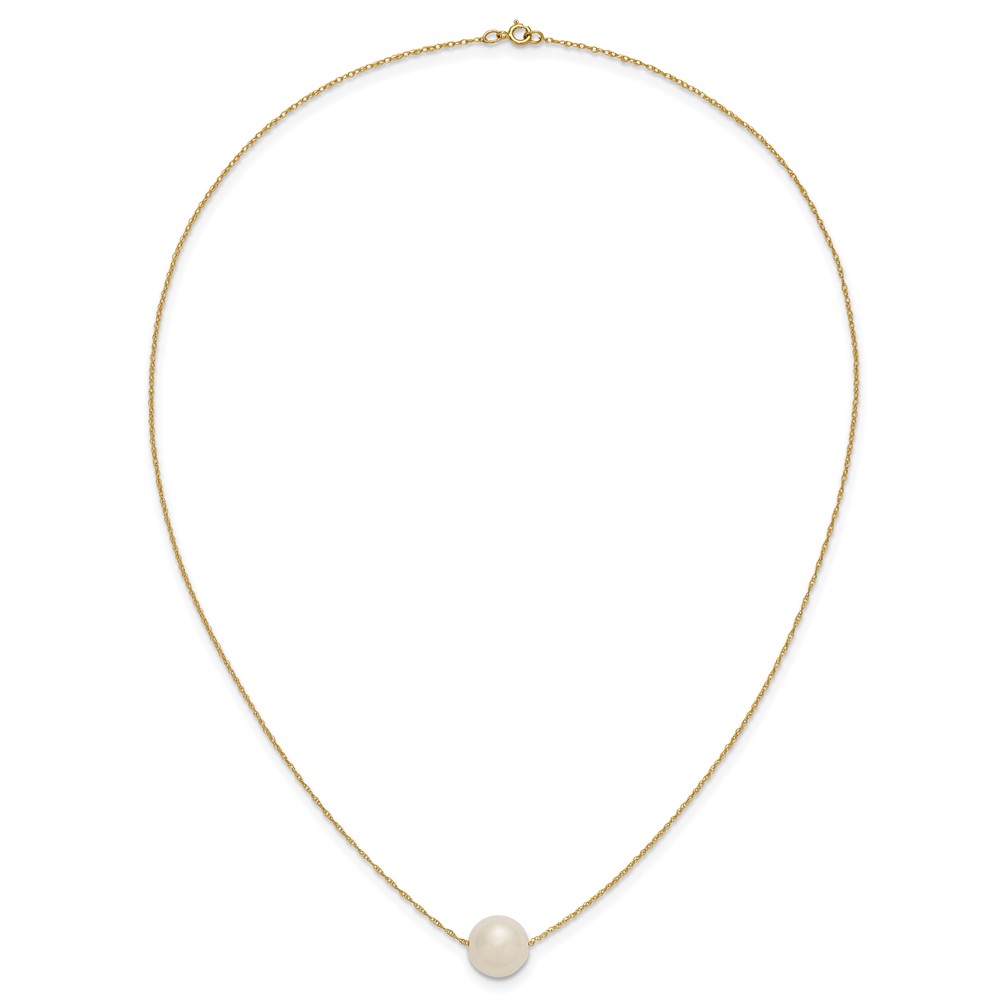 10k 10-11mm White Round Freshwater Cultured Pearl 17 inch Rope Necklace