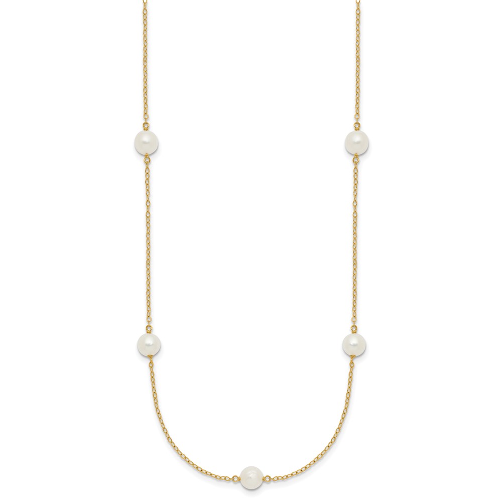10K 5-6mm White Near Round Freshwater Cultured Pearl 7-Station 18 inch Necklace
