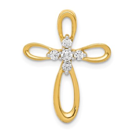 14k White Gold 1/10 carat Champagne Diamond Heart Cross Pendant