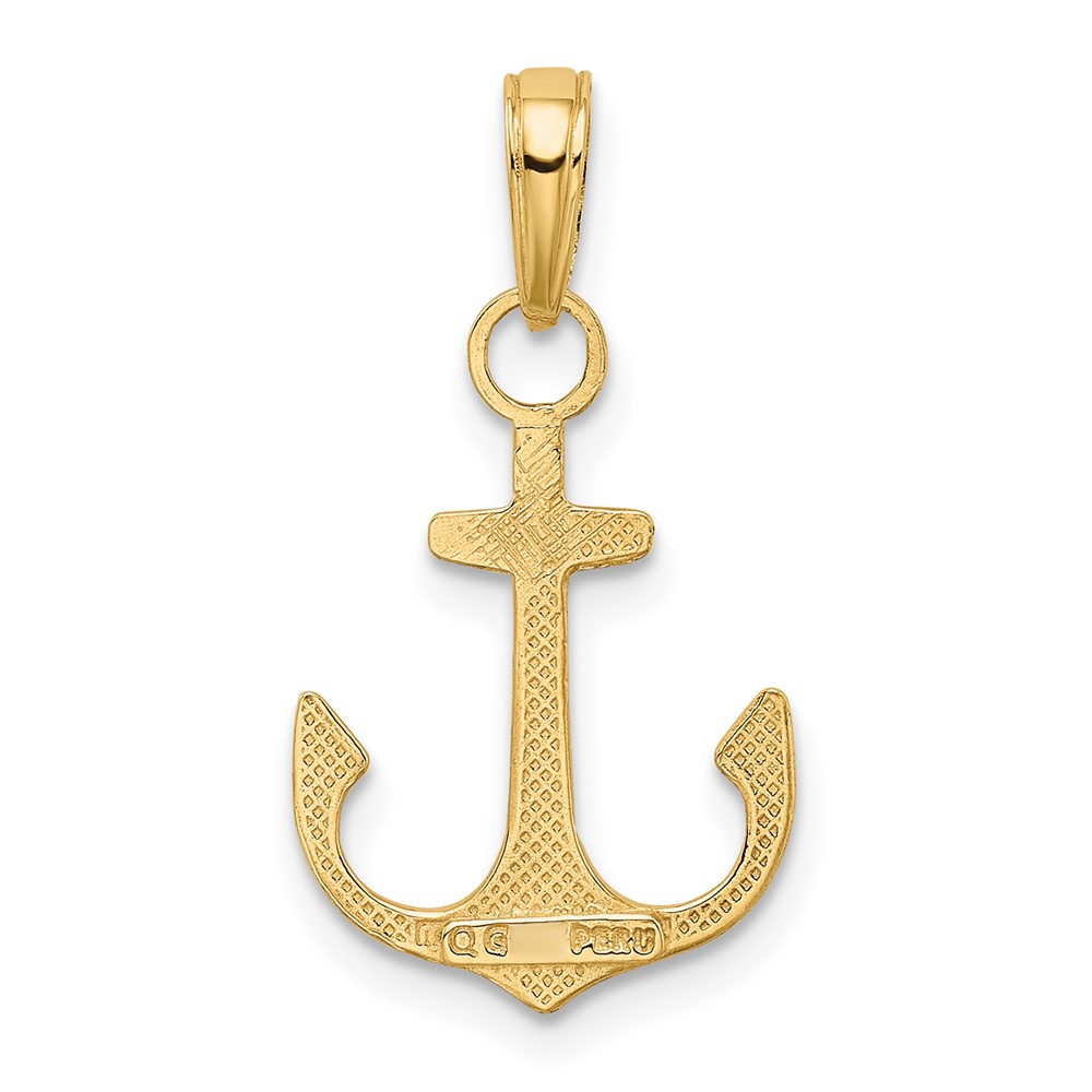 10K Two-Tone 3D Anchor W/Rope Pendant
