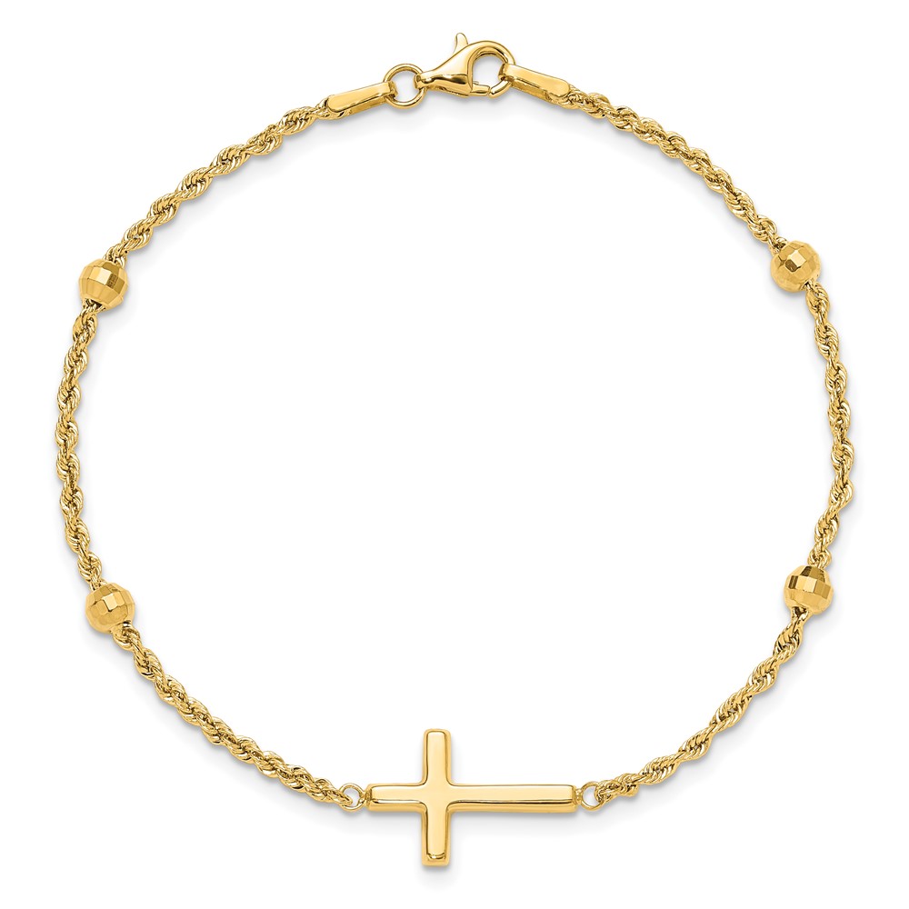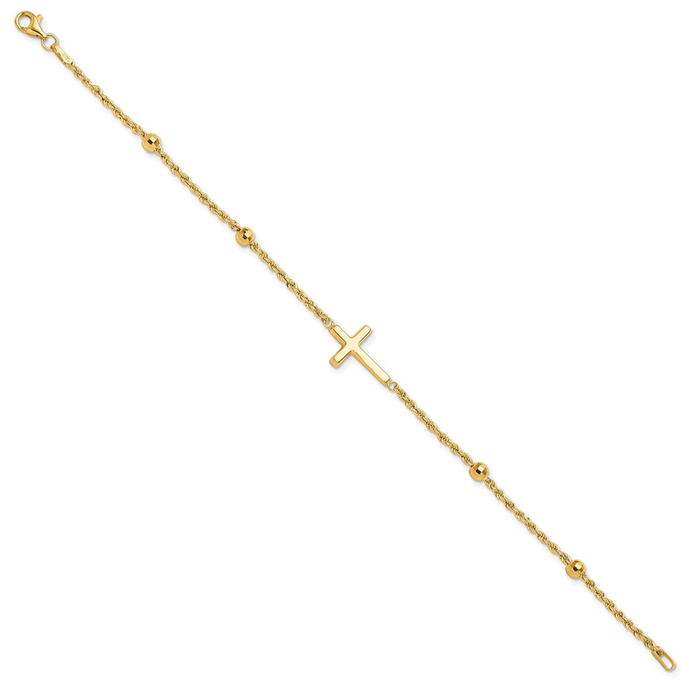 10k D/C Beaded Cross 7.5in Bracelet