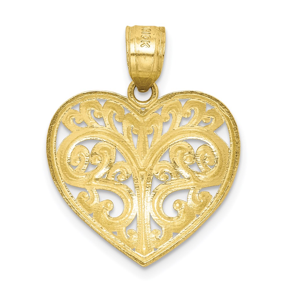 10K Diamond-cut Filigree Heart Charm