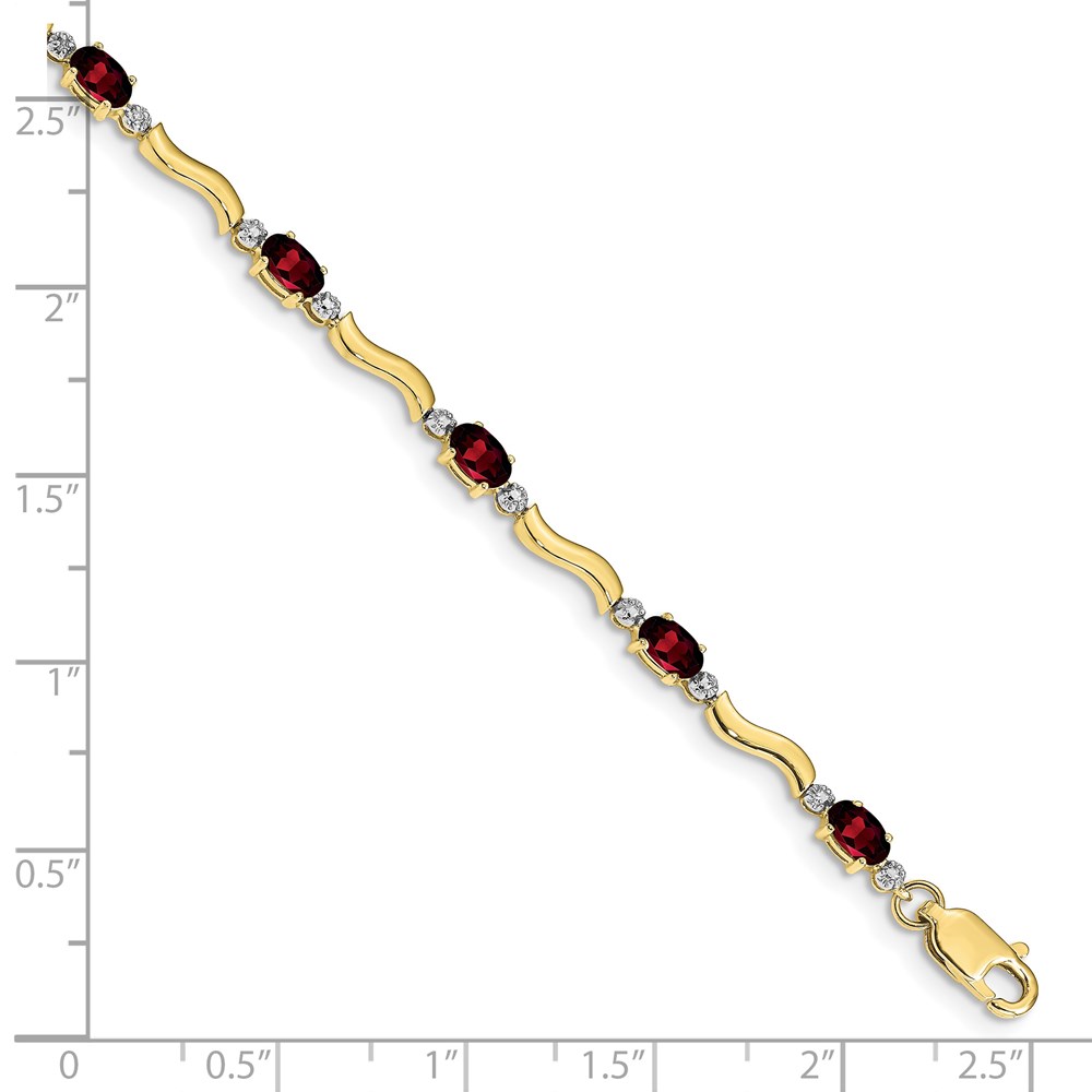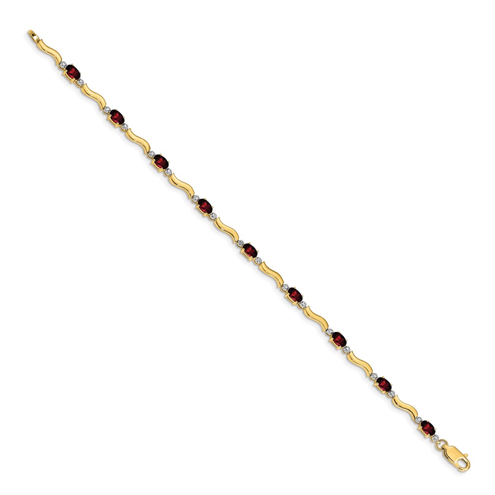 14k White Gold Complete Diamond and Oval Garnet Wavy Link 7 inch Bracelet