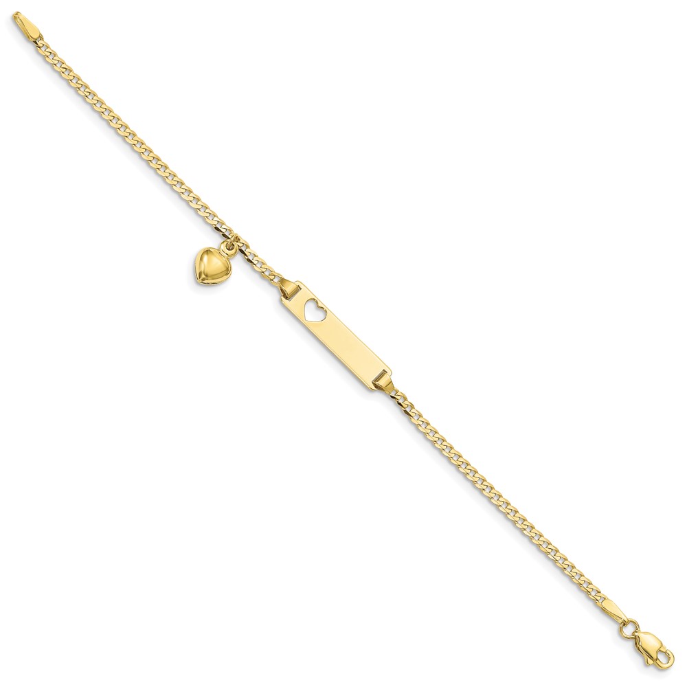10k Flat Curb Link ID Bracelet w/ dangling heart
