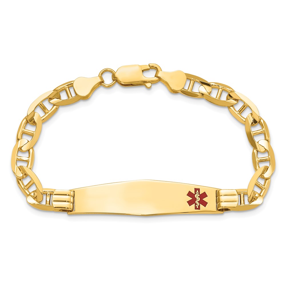 10k Medical Soft Diamond Shape Red Enamel Anchor Link ID Bracelet