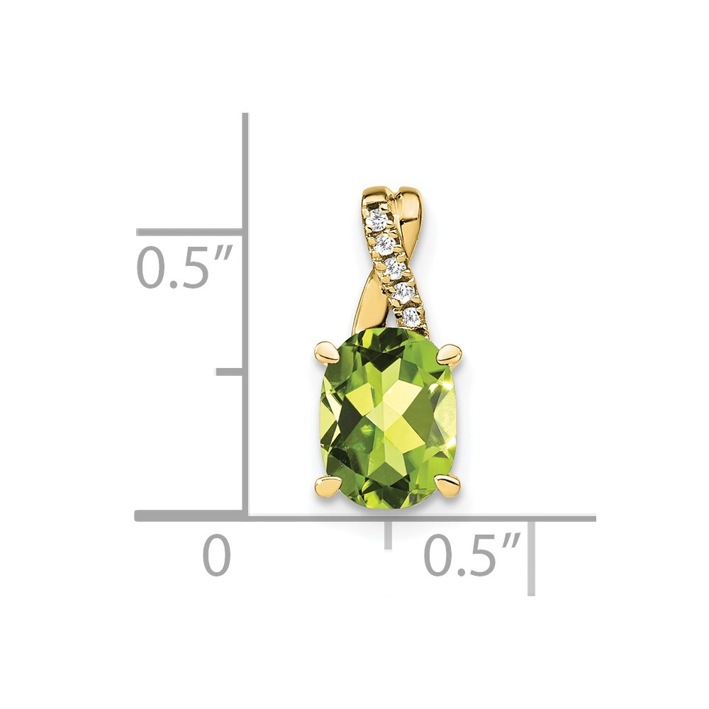 14k White Gold 7x5mm Oval Peridot and Diamond Pendant