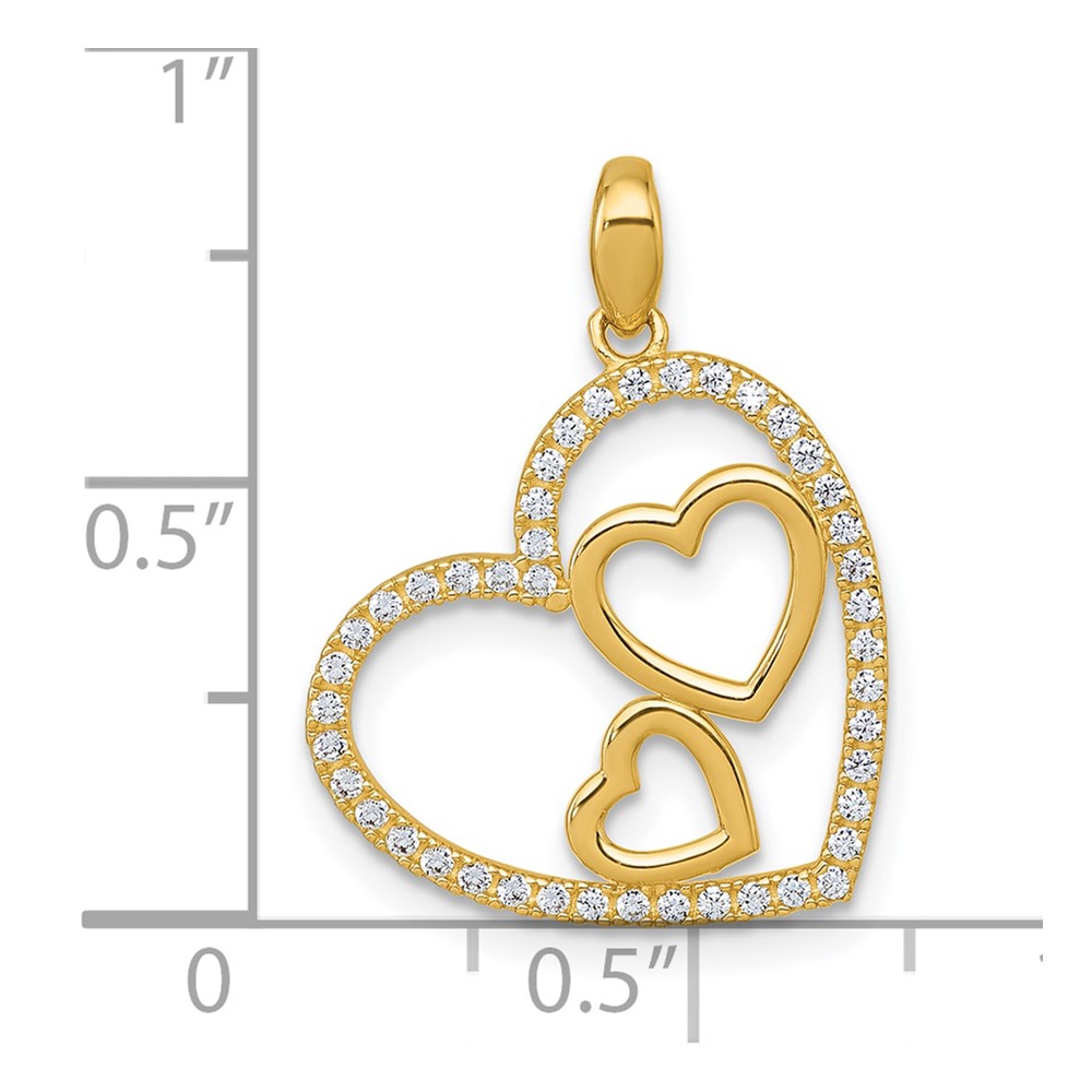 10k Polished CZ Heart with Two Hearts Inside Pendant
