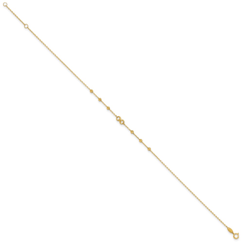 10K Polished Infinity and Diamond-cut Beads Plus Extender – Total Anklet