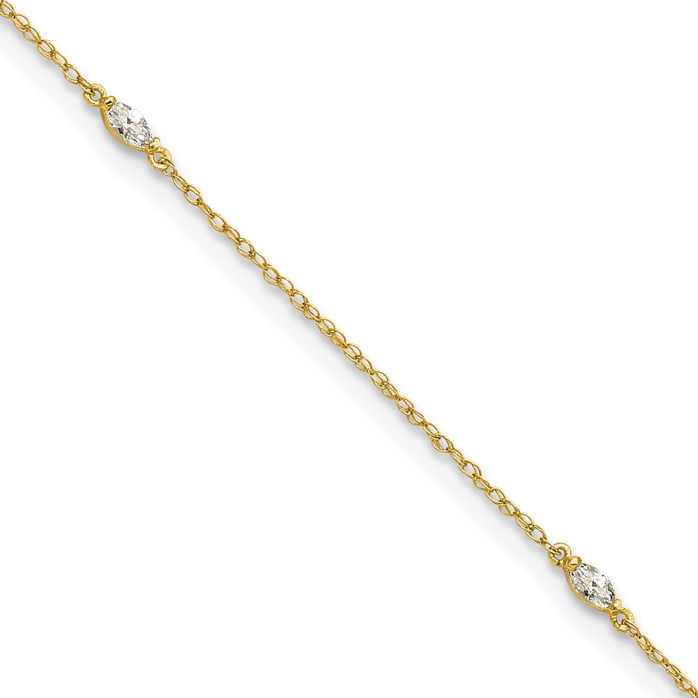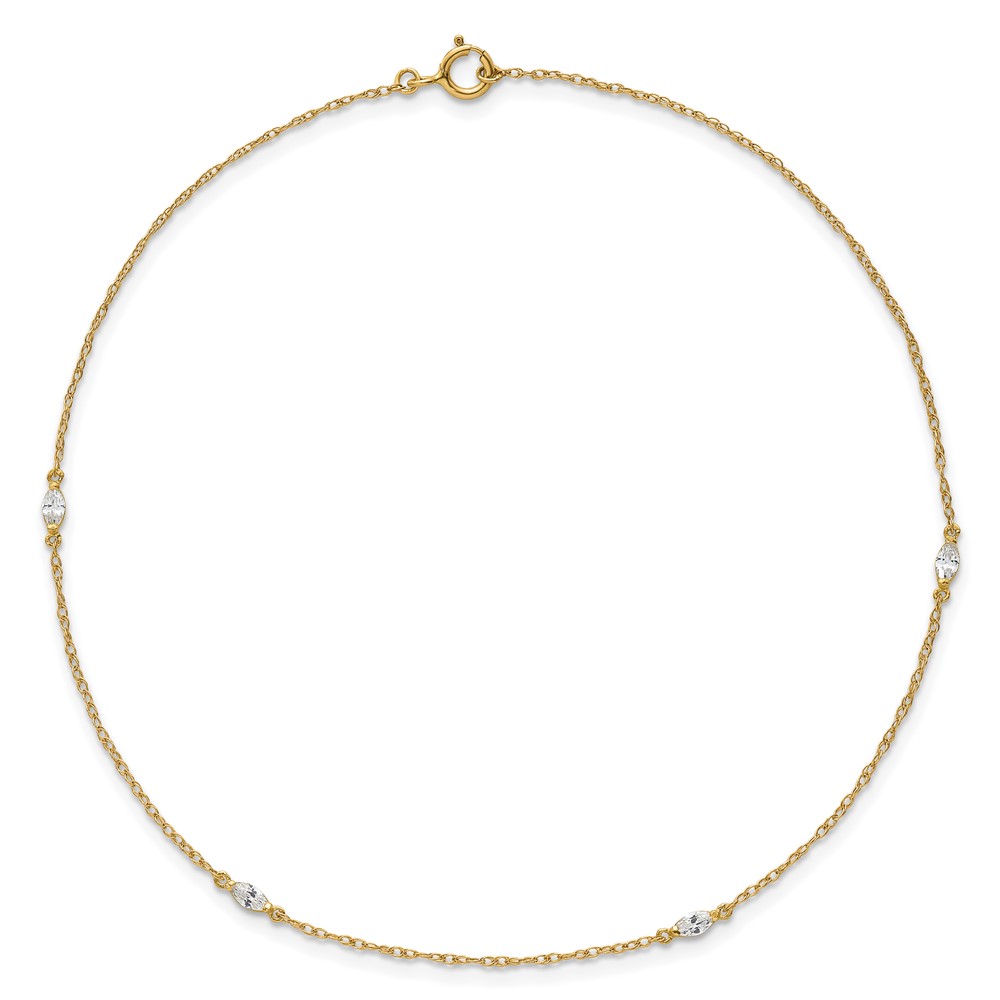 10k Polished Marquise CZ 4-Station Anklet