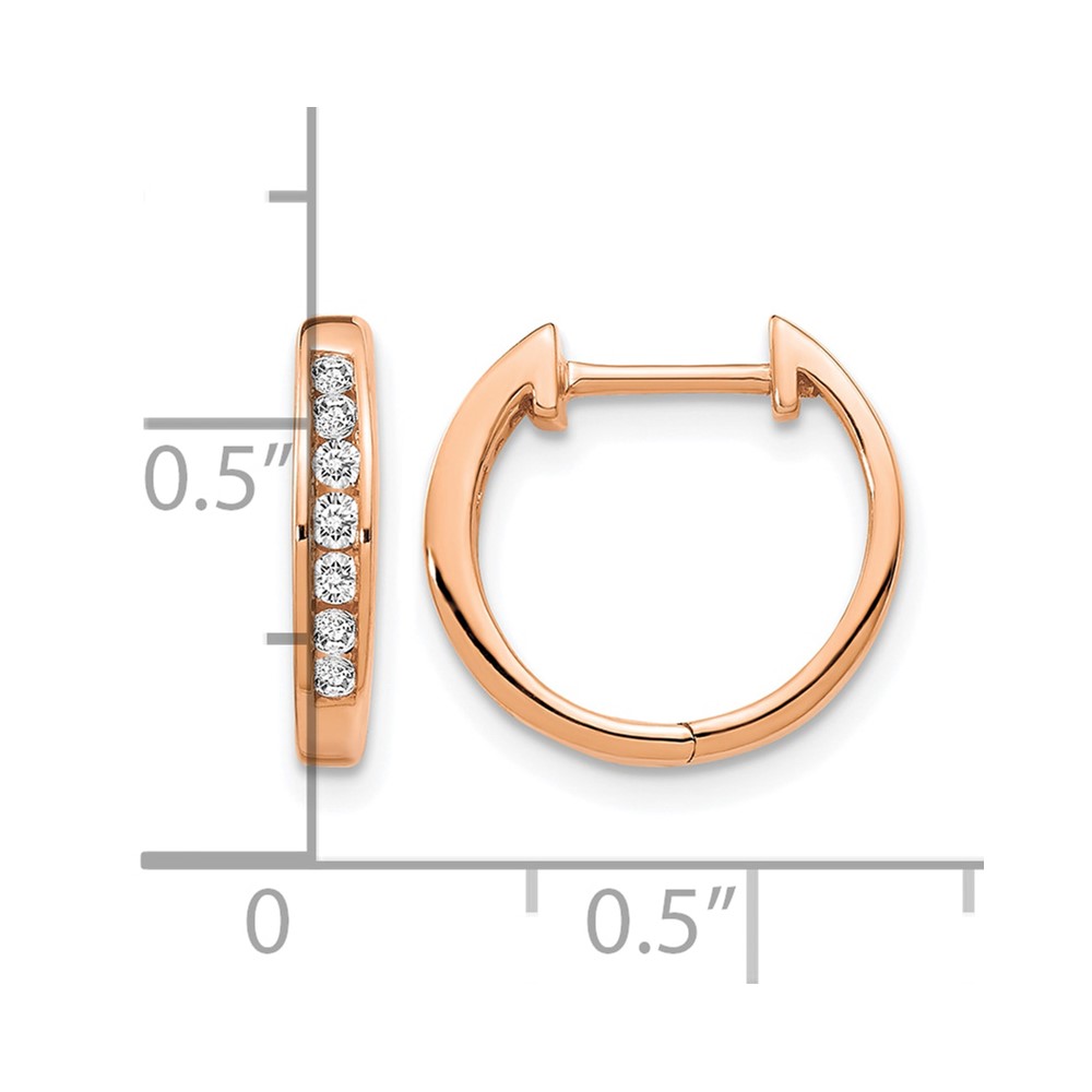 10k Rose Gold Polished Diamond Hinged Hoop Earrings