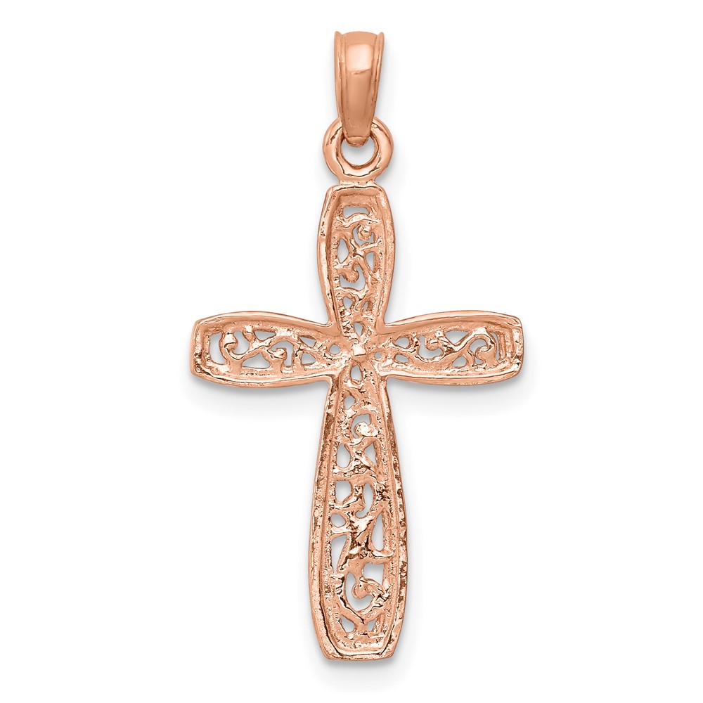 10K Rose w/ White Rhodium Filigree Center Border Cross