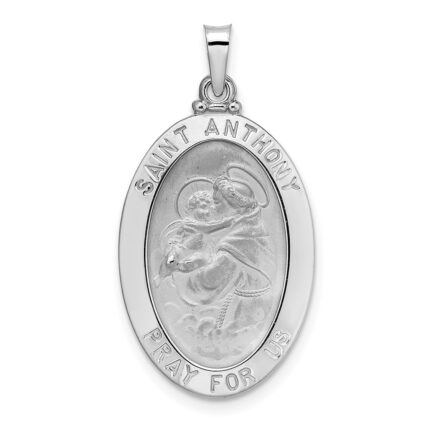 14k White Gold Polished and Satin Solid St Anthony Medal Oval Pendant