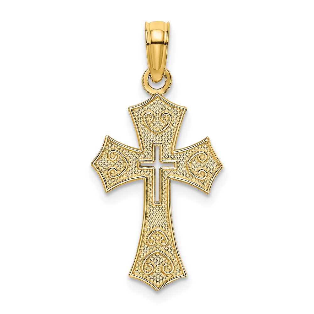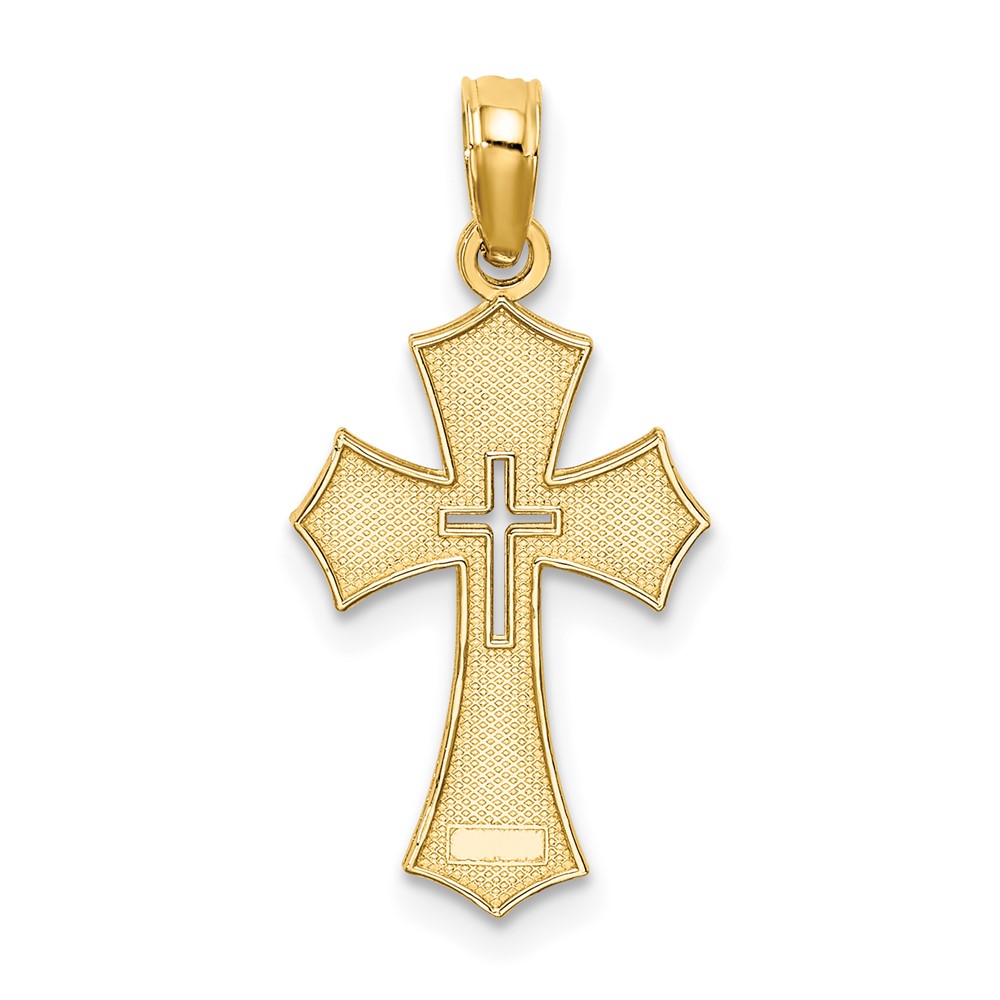 14k White Gold 1/10 carat Diamond Filigree Budded Cross Pendant