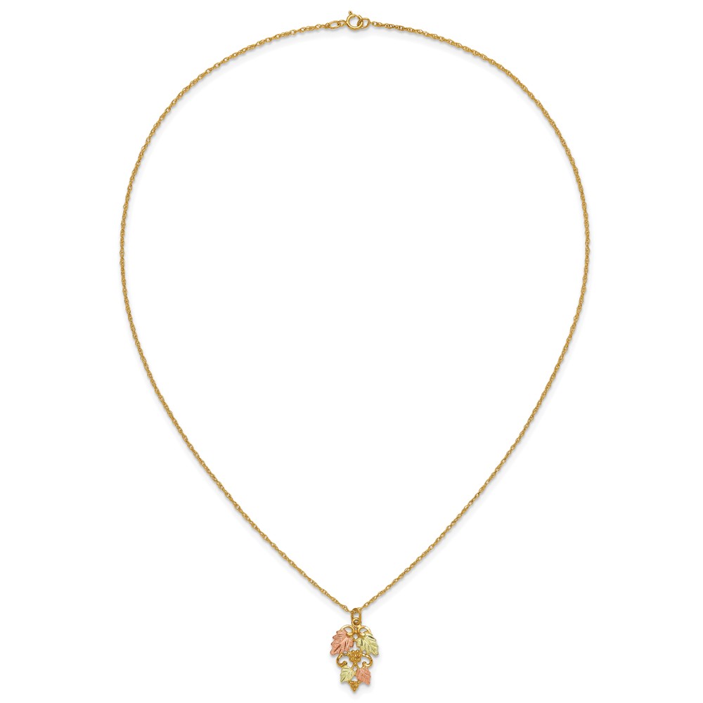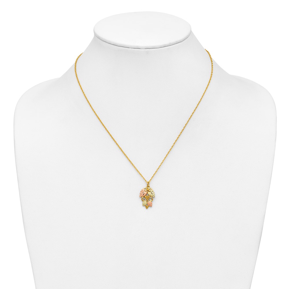 10k Tri-color Black Hills Gold Diamond Rose Necklace