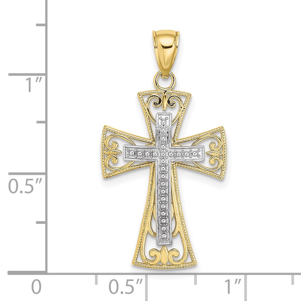 10K Two-tone 2-D and D/C Beaded Filigree Cross Charm