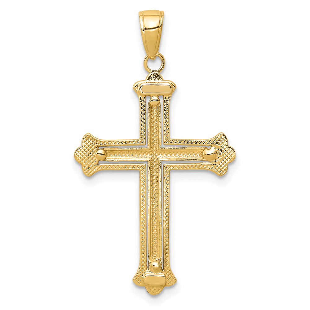 10K Two-tone Cross in Budded Yellow Cross Frame Pendant