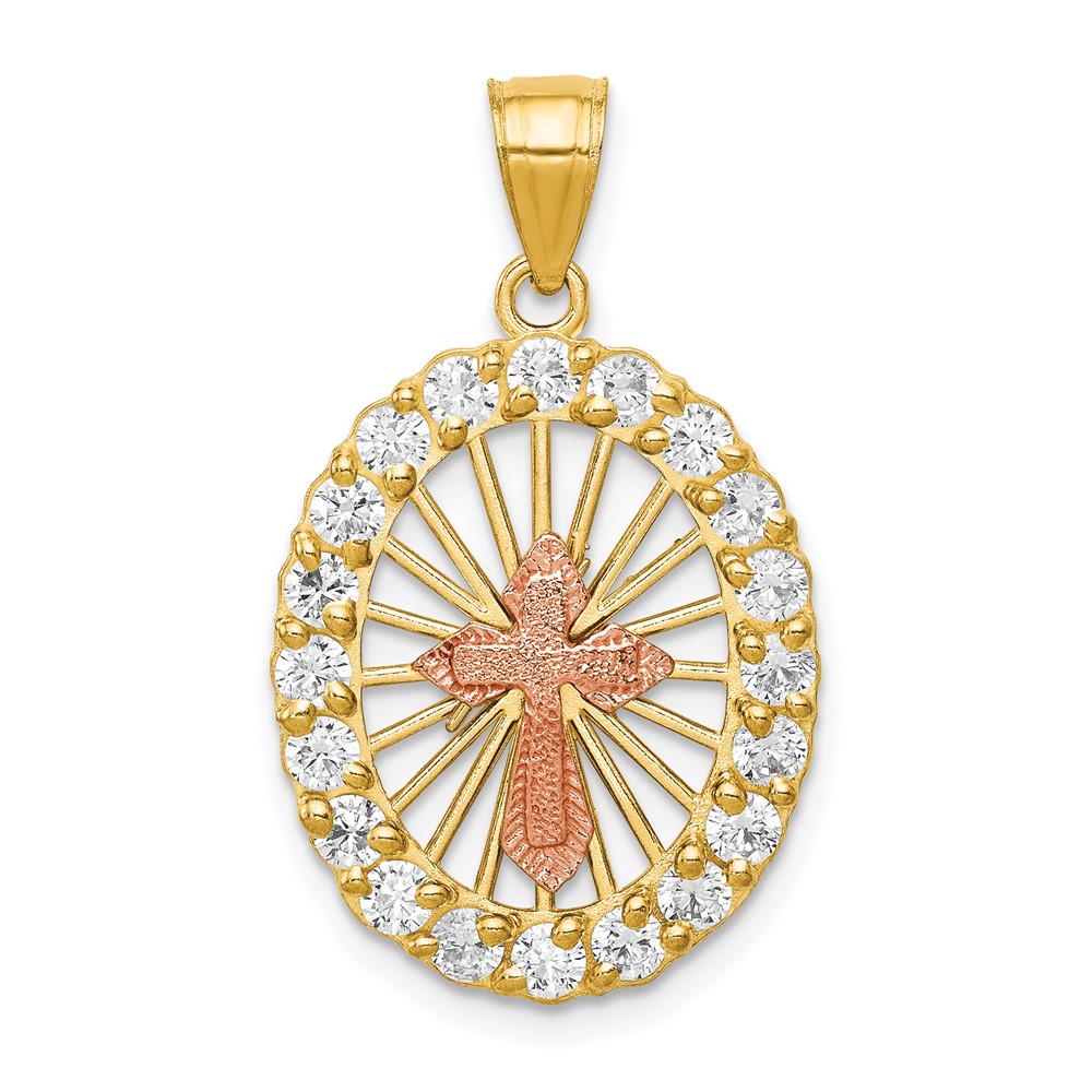 10k Two-tone CZ Cross Pendant