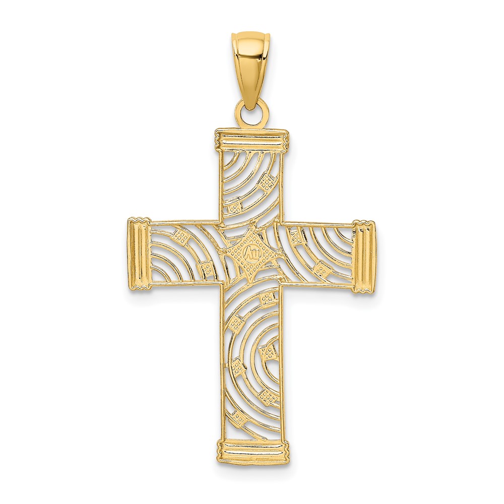 10K W/ Rhodium D/C and Cut-Out Cross Charm