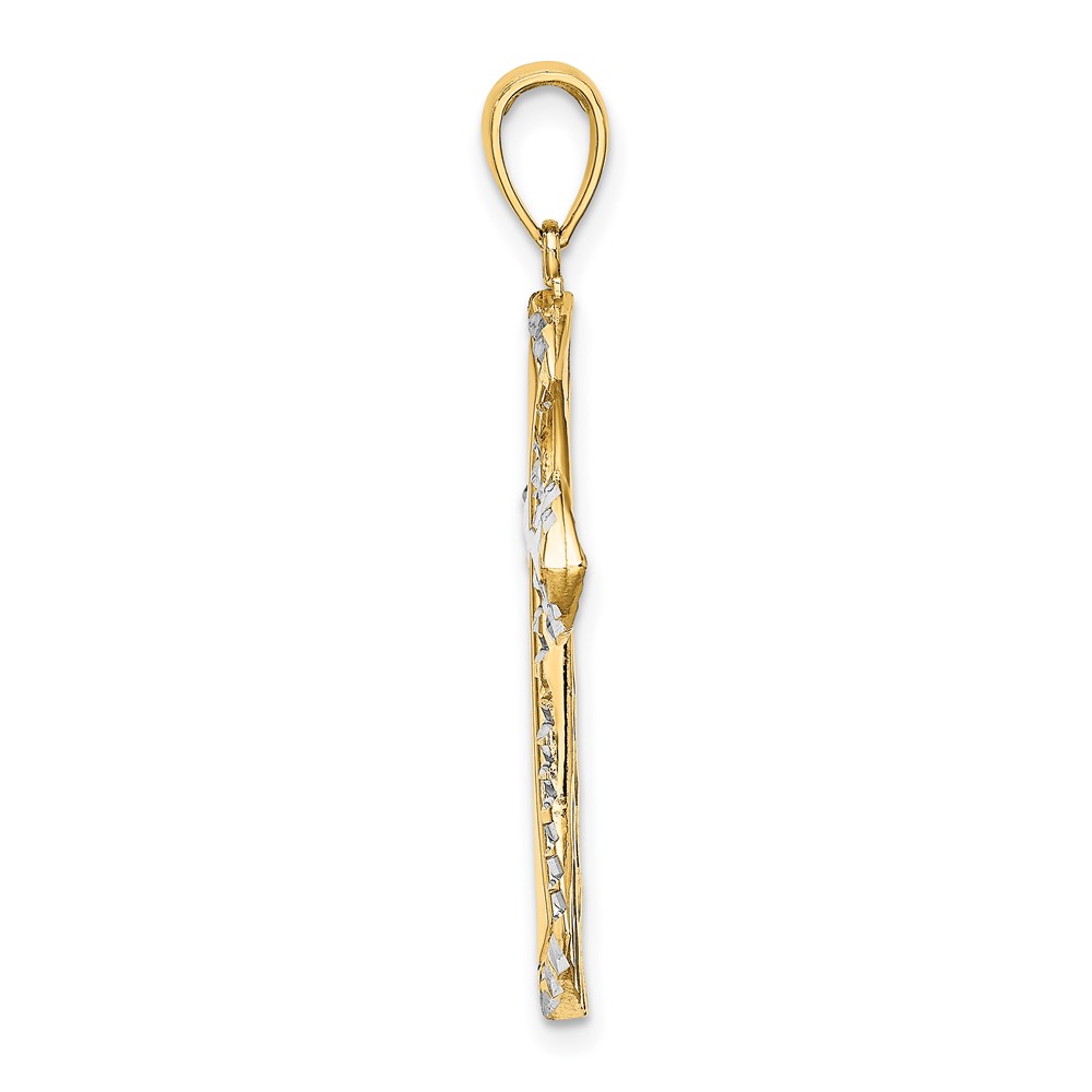 10K w/ Rhodium Filigree and Milgrain Cross Charm