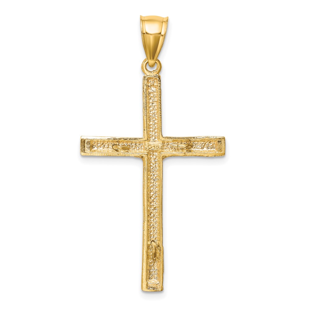 10K w/ Rhodium Diamond-Cut Crucifix Pendant