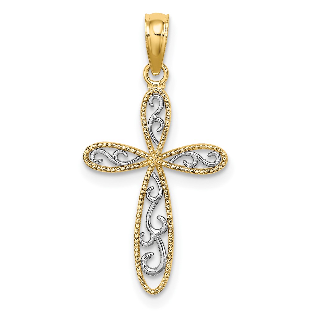 10K w/ Rhodium Filigree and Milgrain Cross Charm