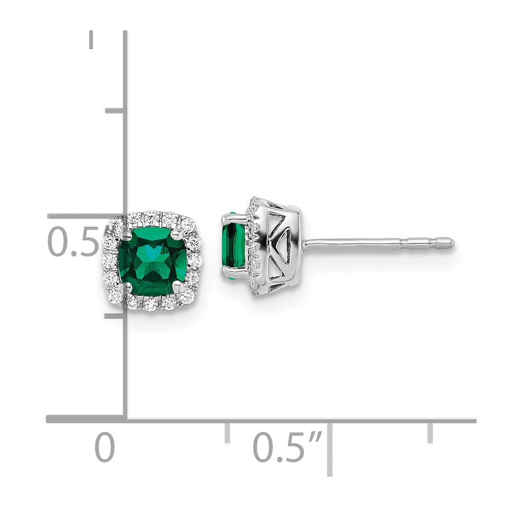 10k White Gold 1/10 carat Lab Grown Diamond VS/SI+ G+ and Created Emerald Complete Square Halo Post Earrings