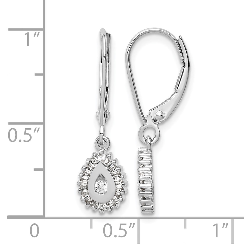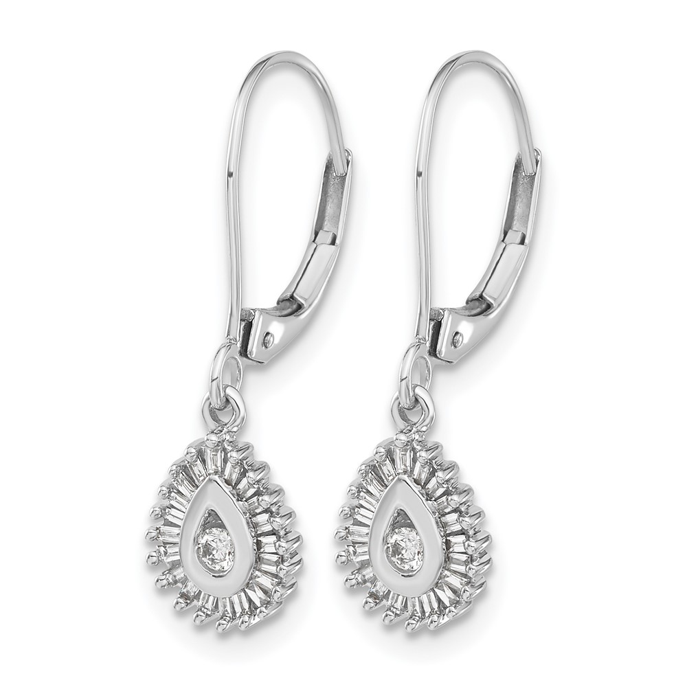 10k White Gold Baguette Diamond Teardrop Halo Leverback Earrings