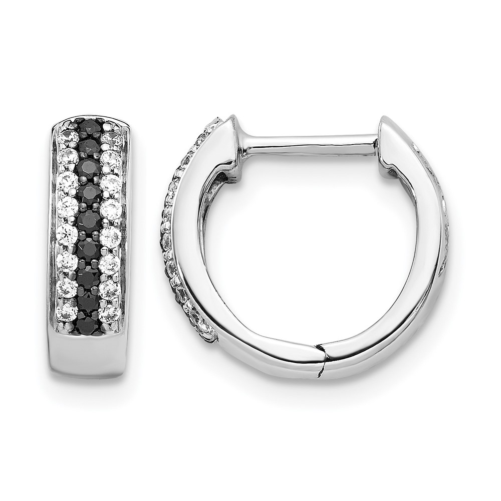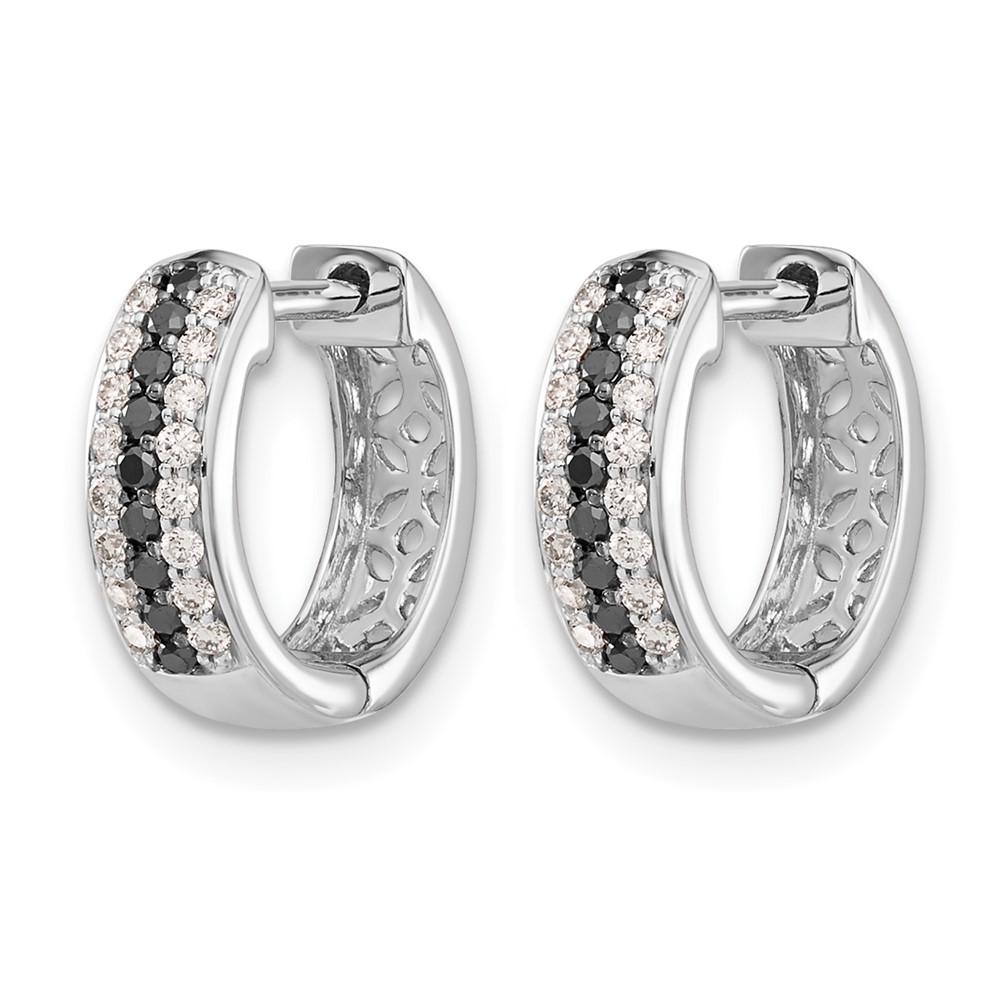 14k White Gold Black and White Diamond Hinged Hoop Earrings