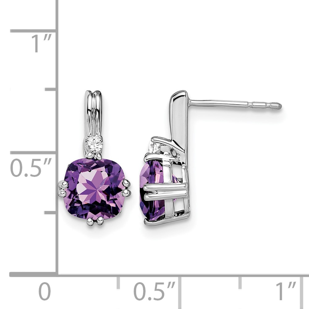 14k White Gold Cushion Amethyst and Diamond Earrings
