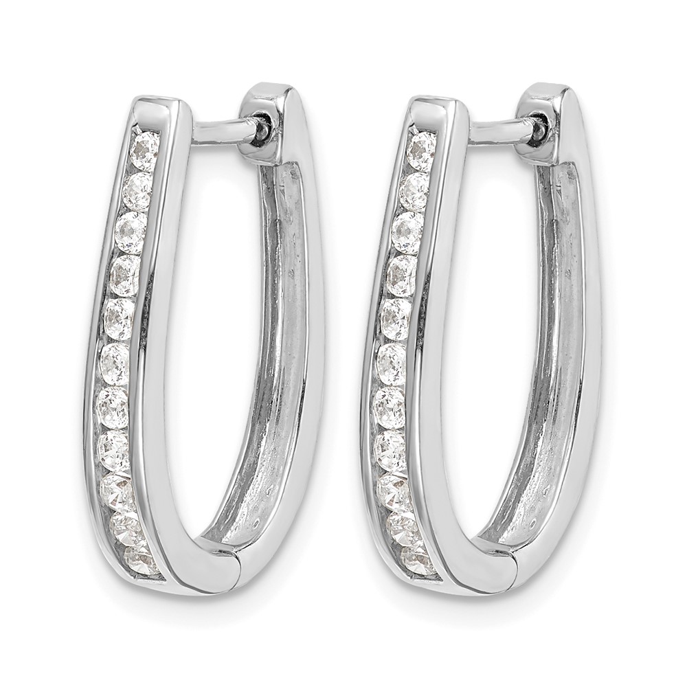 10k White Gold Diamond Oval Hinged Hoop Earrings