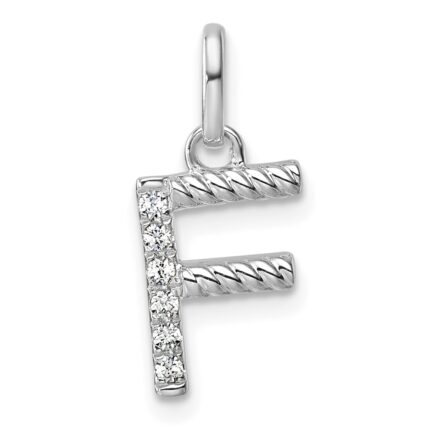 10k White Gold Initial Dog Tag with Diamond Charm