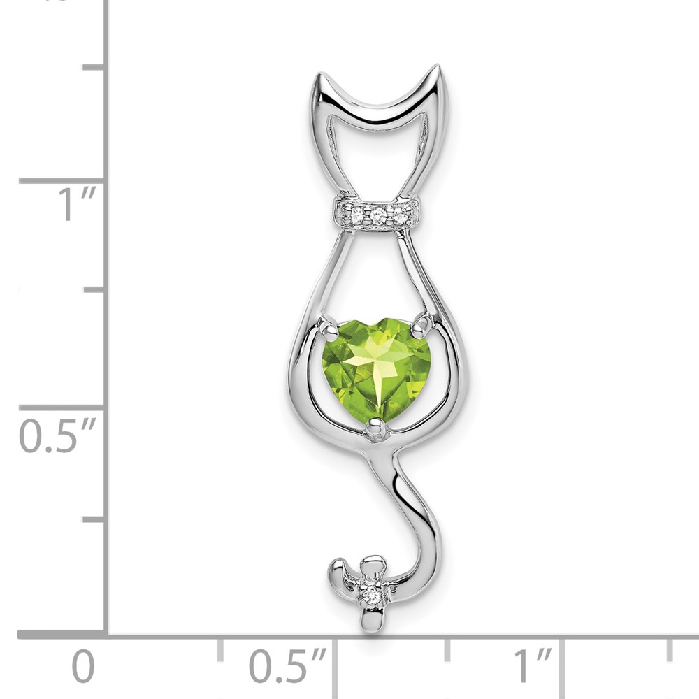 14k White Gold 6mm Heart Peridot and Diamond Cat Chain Slide