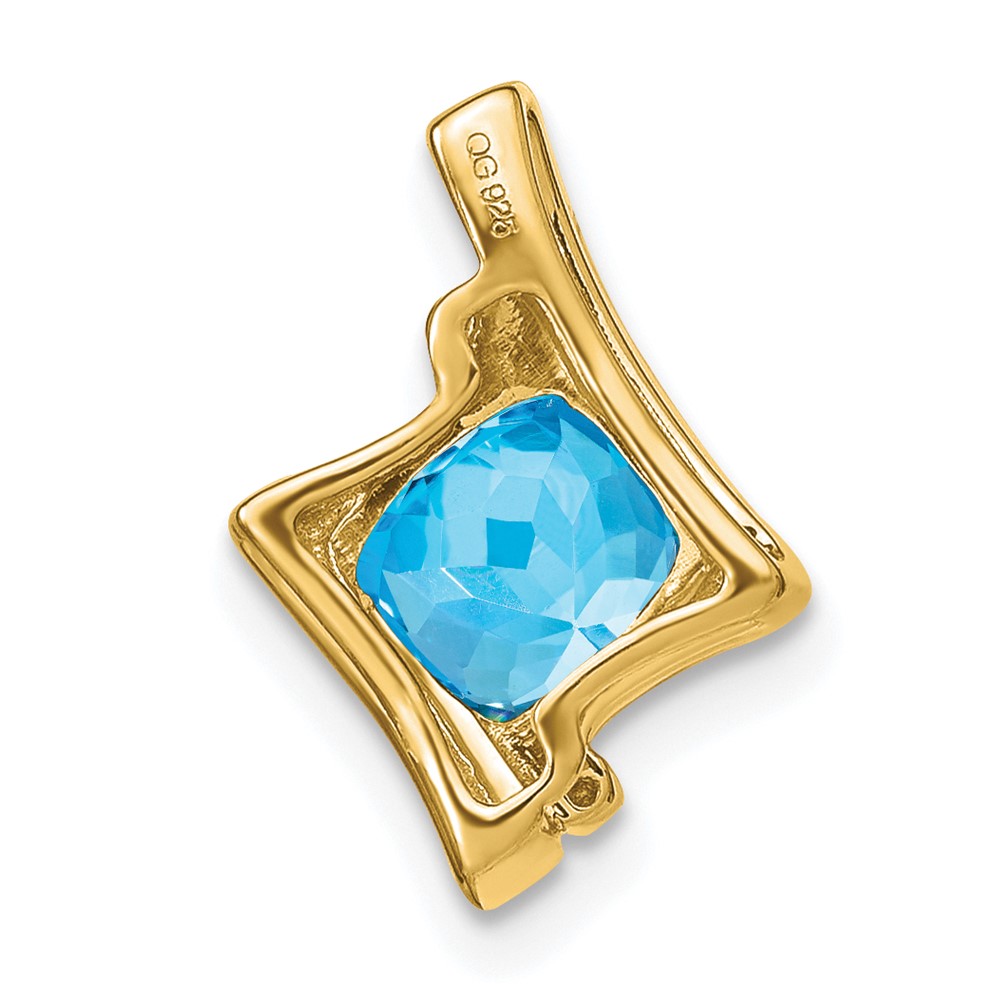 14k White Gold 6mm Cushion Blue Topaz and Diamond Chain Slide