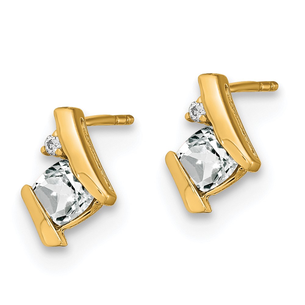 10k Yellow Gold Cushion White Topaz and Diamond Earrings