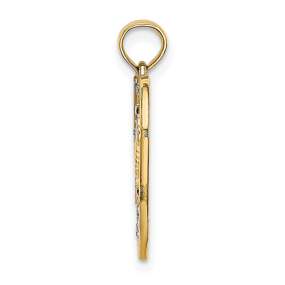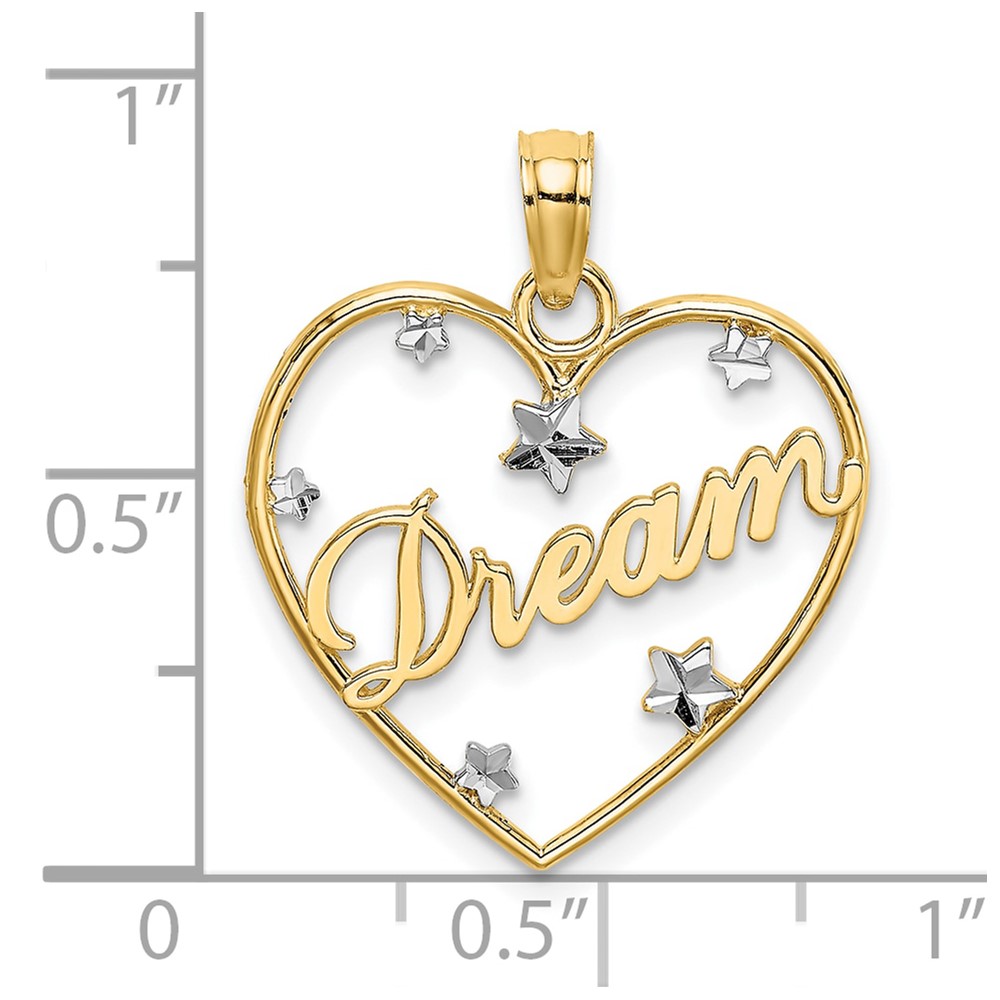10Kw/Rhodium DREAM In Heart w/ D/C Star Accents Charm