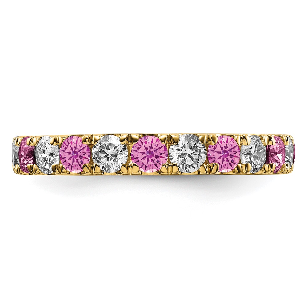 14k 1 carat Lab Grown Diamond VS/SI+ G+ and Lab Created Pink Sapphire Size 6 Eternity Band