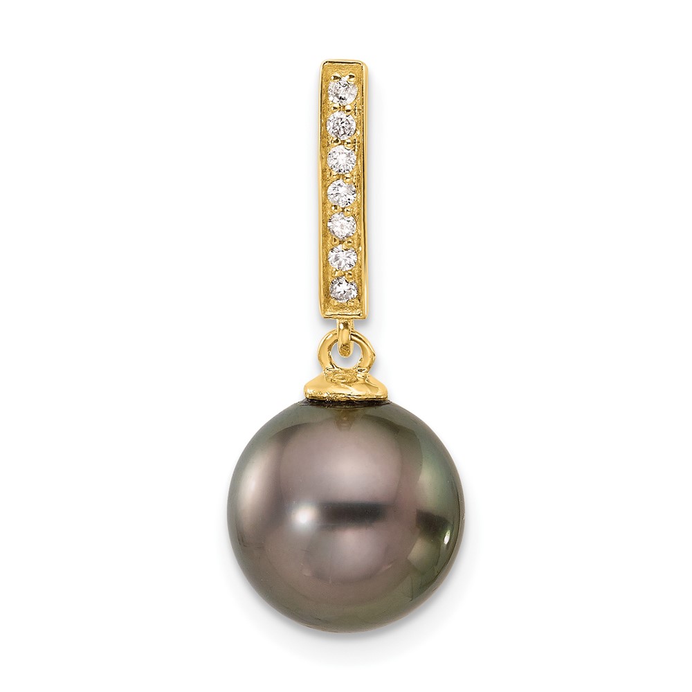 14k 10-11mm Black Round Tahitian Saltwater Cultured Pearl and .07 Carat Diamond Dangle Chain Slide
