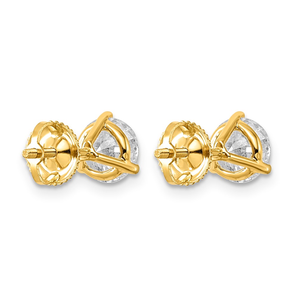14k 2 1/2 carat Lab Grown Diamond VS/SI+ G+ Round Complete Three Prong Screwback Stud Earrings