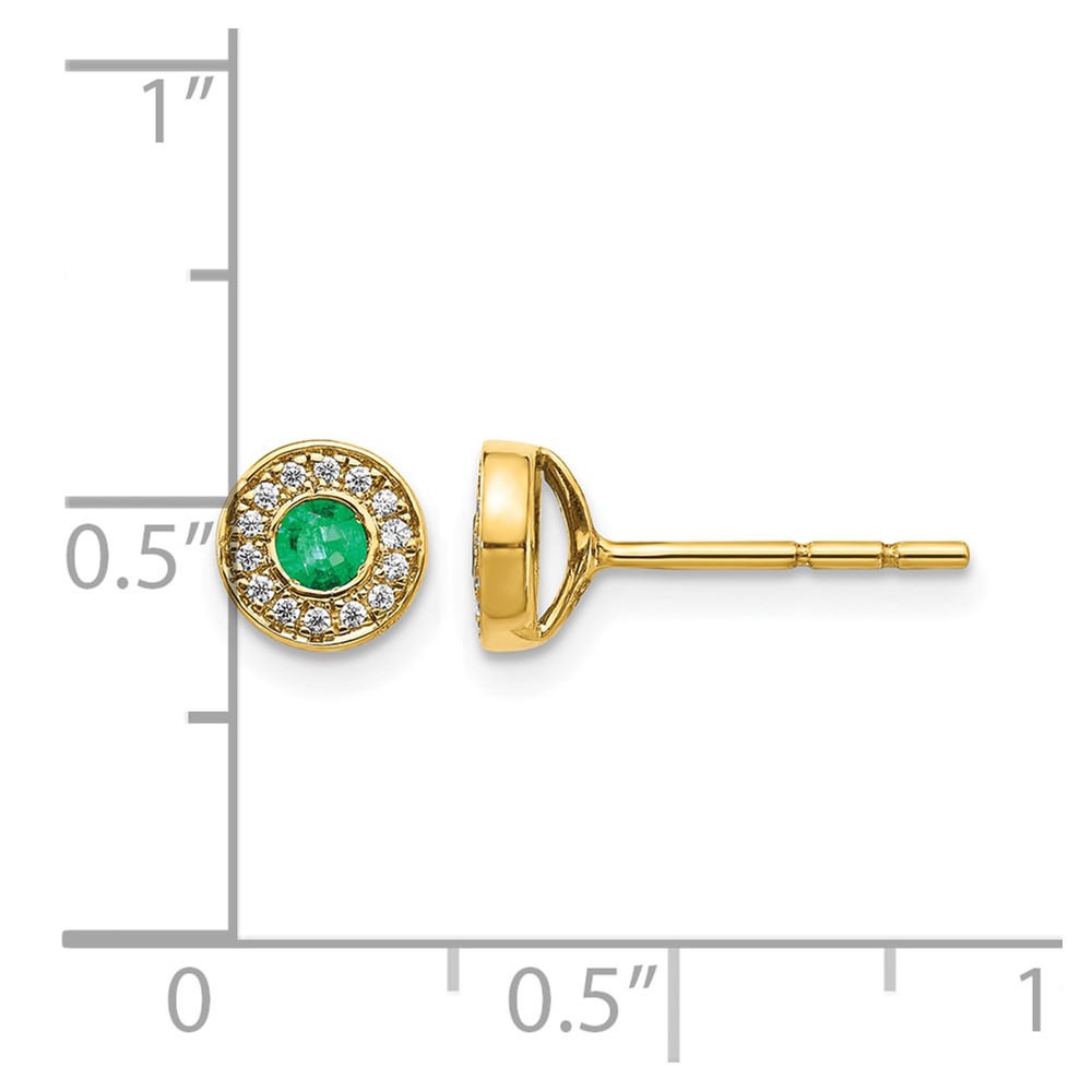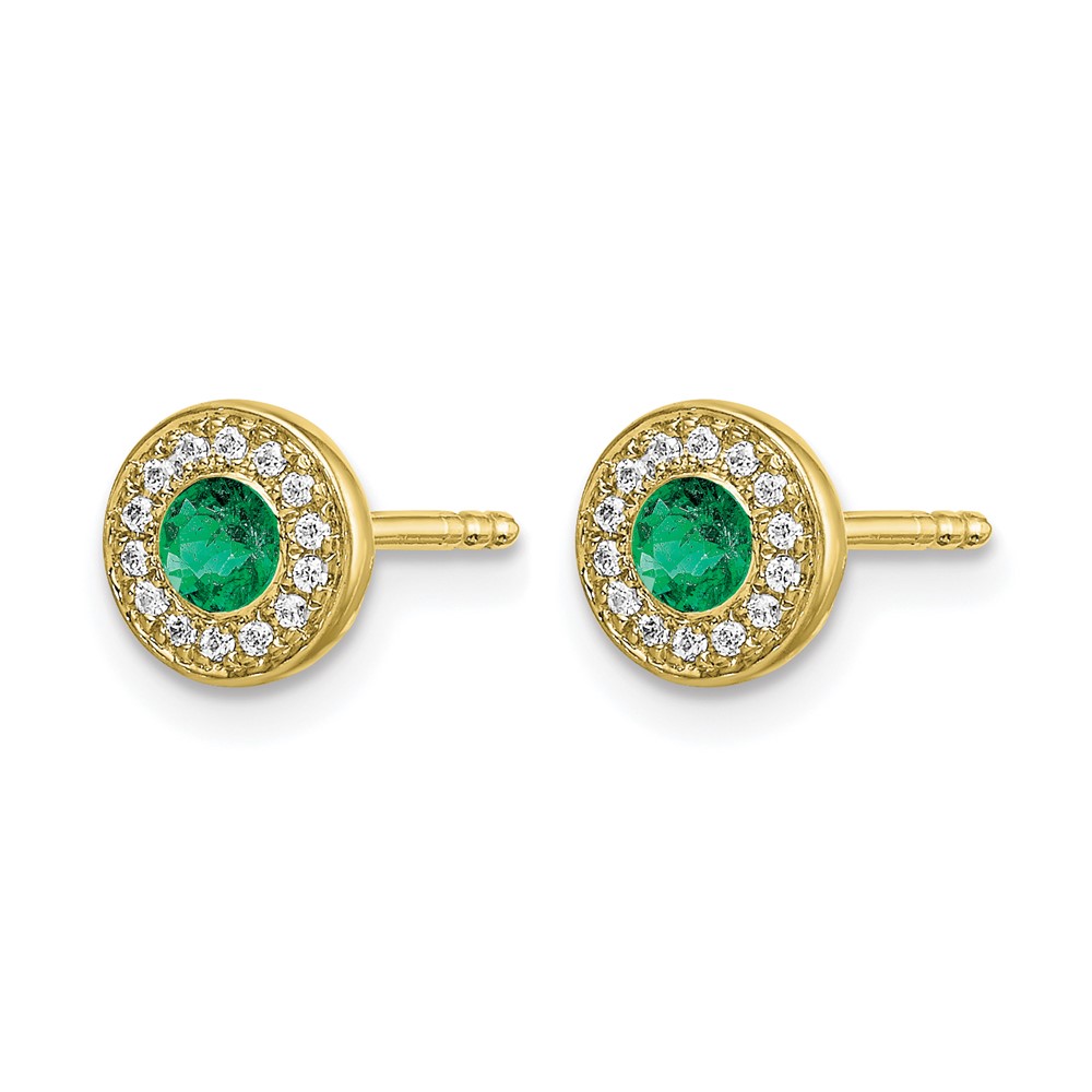 14k 2.8mm Round Emerald and Diamond Halo Post Earrings