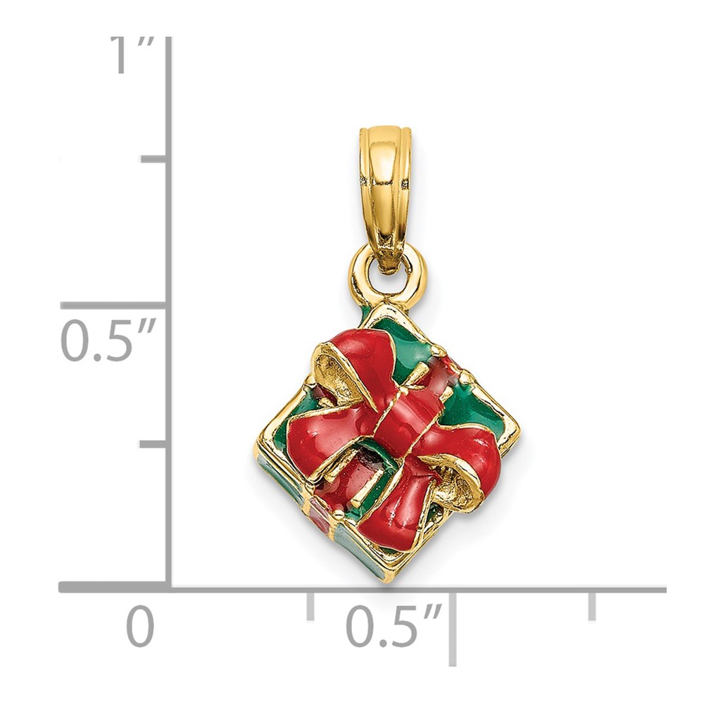 14K 3-D Enameled Green Gift Box with Red Bow Charm