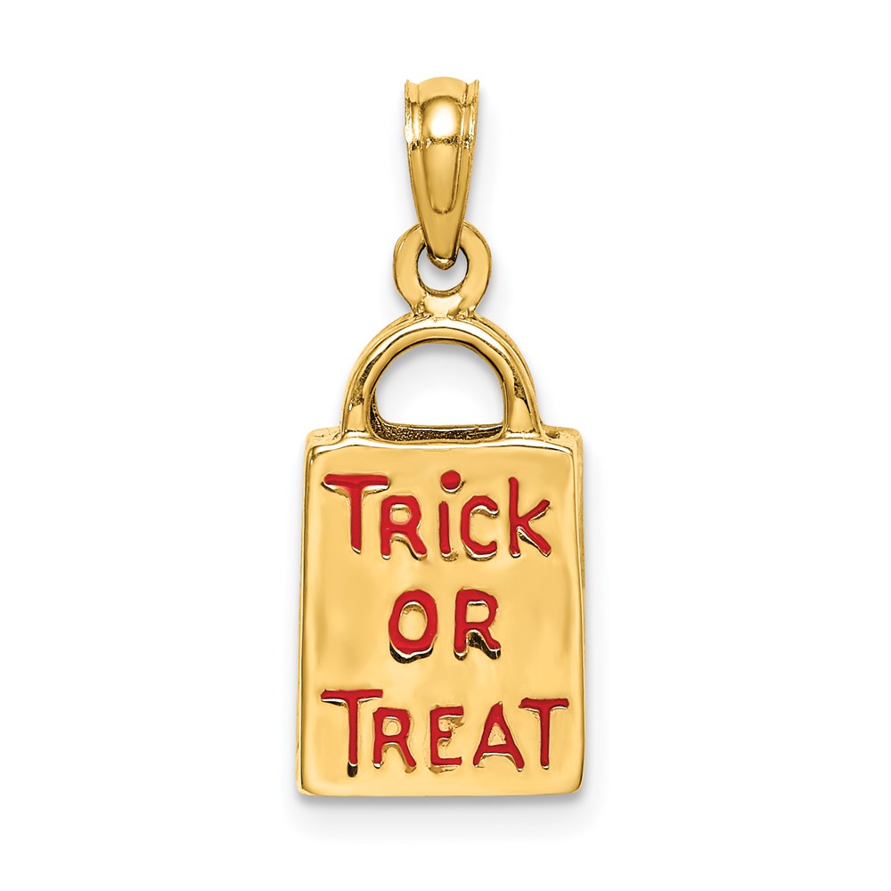 14K 3-D Enameled Jack-o-Lantern Trick or Treat Bag Charm